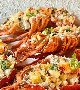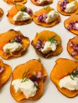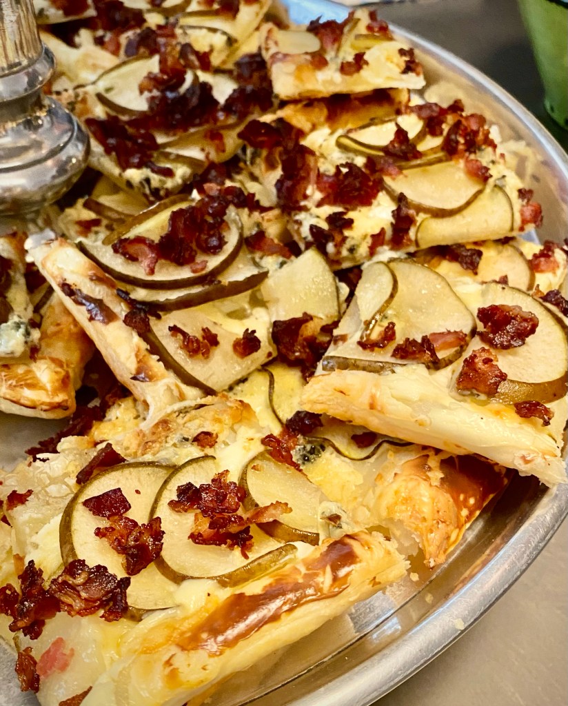 Smördegssnittar med grönmögelost, päron och baconsmul