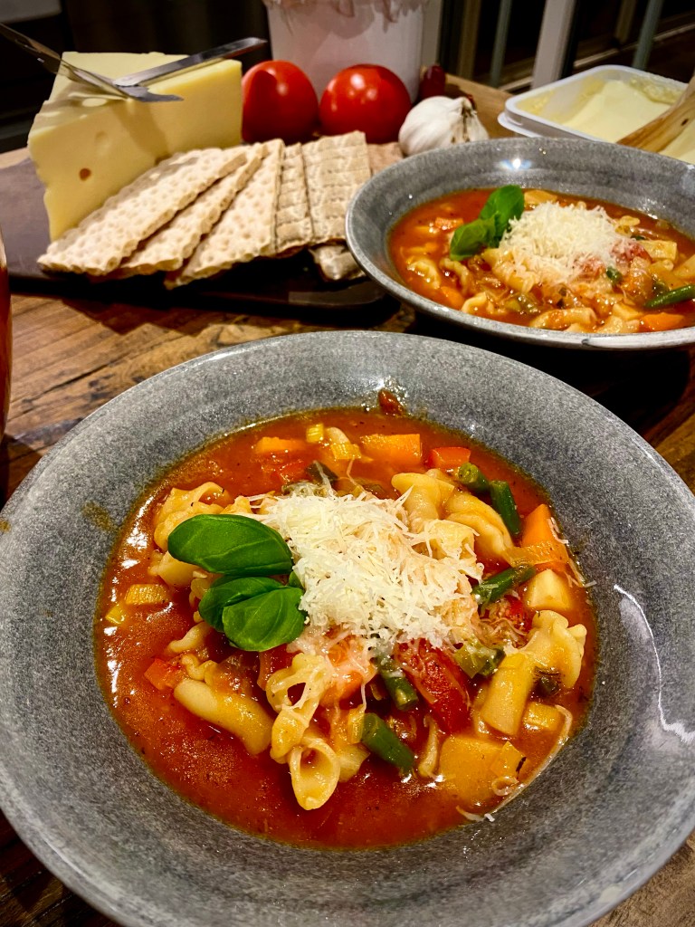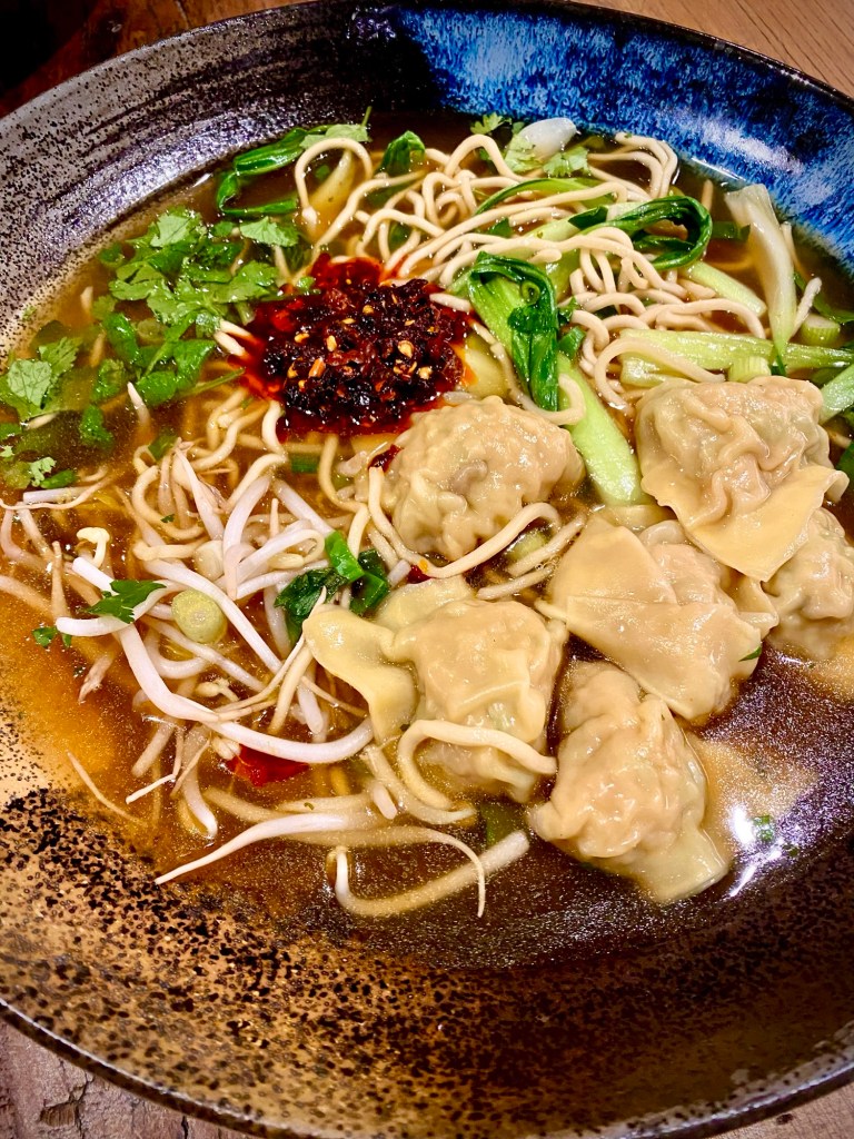 Här en värmande wonton soppa med goda grönsaker. Det är ett jäkla pill att vika won-tons, men väl värt mödan. Se mitt inlägg om ”wontons” på förslag på vikning. Passa på att göra ett helt gäng med wonton’s som du fryser in för att ta fram och antingen fritera för att äta med sötsur sås eller som soppa.