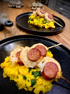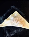 Blanda allt i fyllningen och låt det stå kallt en stund för att sätta sig lite. Lägg upp ca 1 tsk fyllning i mitten på ett skal. Fukta nätt runt kanterna för att det ska fästa lättare. Vik ihop, och lägg på ett lätt mjölat underlag, annars fastnar dom. Jag brukar använda majzena.