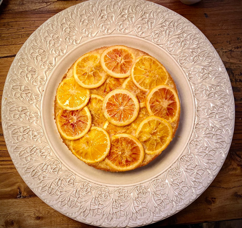 Det är inte ofta jag bakar. Är helt enkelt så bra på det faktiskt. Men en dessert måste skakas fram och då hittade jag den här upp-och-nerkakan. Det stod att den var väldigt enkel att göra och supergod! Nappade direkt och måste nog säga att det stämde väldigt bra. Om du har tur och får tag på riktigt röd-gula blodapelsiner blir det så vackert med de fina skivorna, och nu är det säsong! Receptet är lätt att följa och tycker resultatet blir riktigt bra. Extra gott att inte snåla på resterande glasyr att hälla över den färdiggräddade kakan.