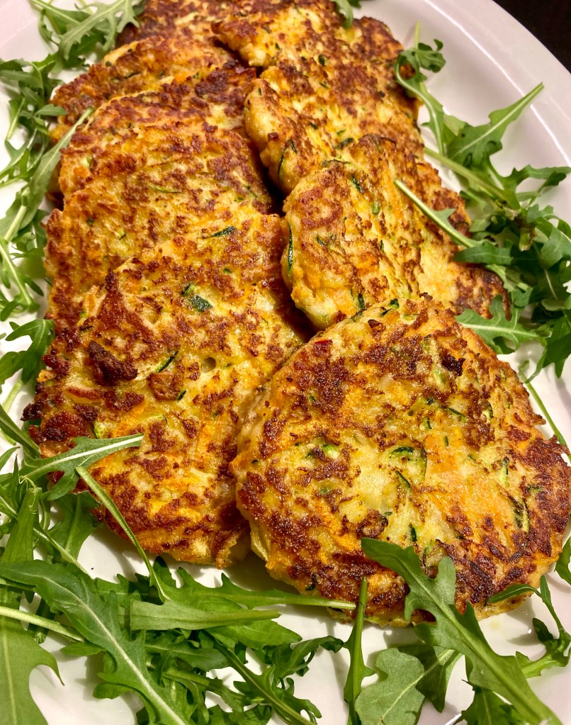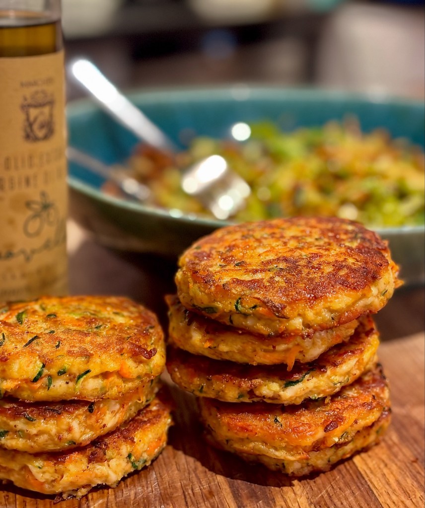 Jag blev bjuden på så goda vegetariska biffar hos goda vänner på Rådmansö i somras och blev sugen. Vi hade både zucchini och morötter som behövde ätas upp, så det passade perfekt. Det här är ju riktigt billig och god mat. Servera med ugnsrostad potatis med panko o parmesan (tidigare inlägg) och créme fraîche sås smaksatt med lime, honung o chili.