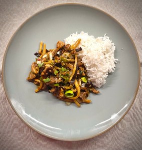 3. Lägg över blandningen i en stor skål och tillsätt bönor och salladslök