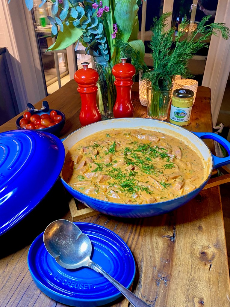 Korv stroganoff med dill och senap