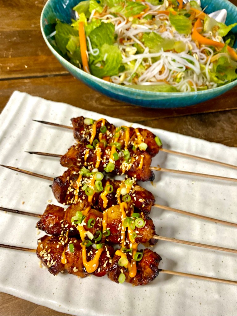 STICKY SPICY CHICKEN SKEWERS… in some korean way, och hur gott som helst. Dessa måste du testa nästa gång du grillar. Så goda och lätta att göra. Servera med vad du vill, ris, grönsaker eller som vi gjorde, en asiatisk inspirerad nudelsallad. Riktigt gott och festligt så här en vanlig dag mitt i veckan.,