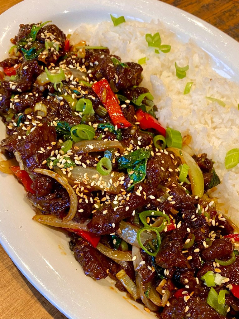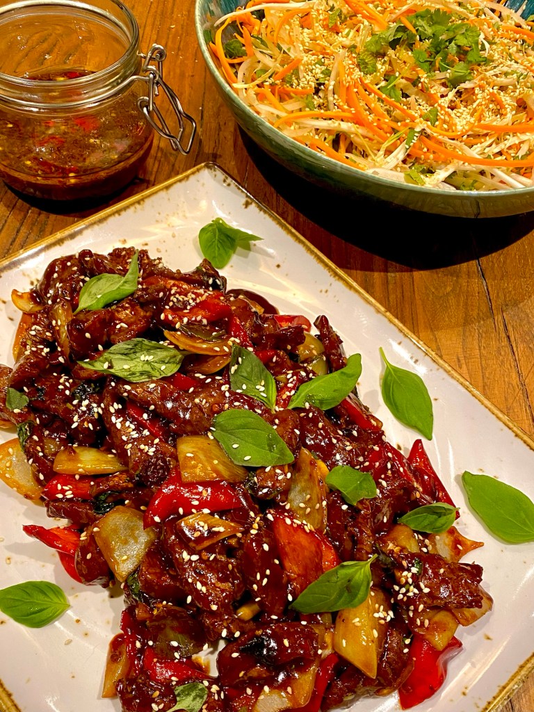 Mongolian beef eller Pad kra prow (Biff med thai basilika)? Jag var så sugen på dessa rätter igår och kunde bara inte bestämma mig vad det skulle bli. Det slutade med en blandning av de två – vilket visade sig blev ett väldigt lyckat resultat. Får väl kalla den Mongolian Pad kra pao beef eller nåt.