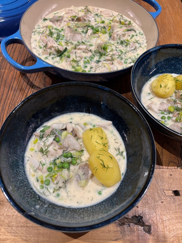 I en kastrull, bryn vitlök och ingefära i sesamolja. Tillsätt currypastan och rör om. Häll på cocosmjölk, fisksås och soja. Låt koka upp. Sänk sedan värmen och låt den puttra några minuter. Smaka av.