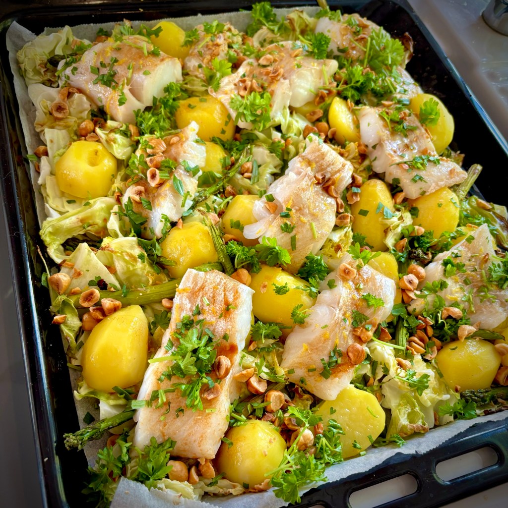 Några rostade hasselnötter och lite örtolja.