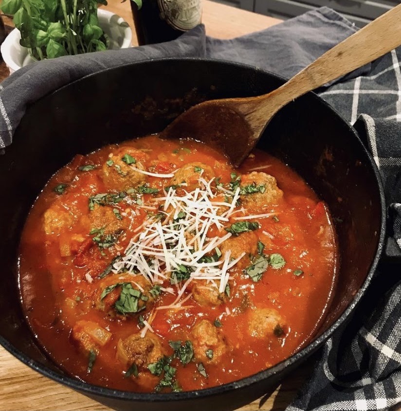 Servera med basilika och riven parmesan