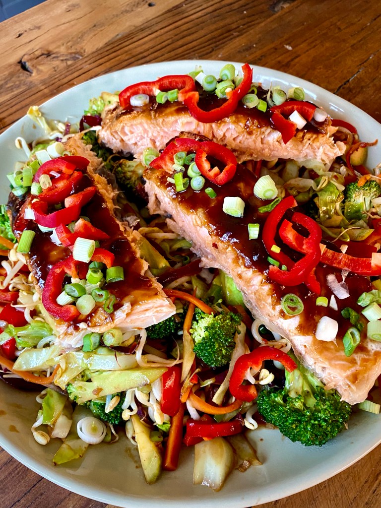 Ugnsbakad lax med glaze på hoisinsås och sesamolja